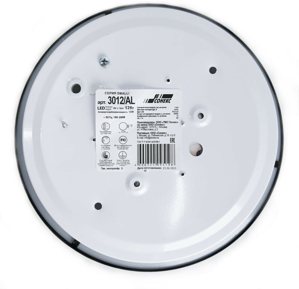 Купить Светильник Настенный Потолочный 3012/AL пластик/белый/черный LED 12Вт