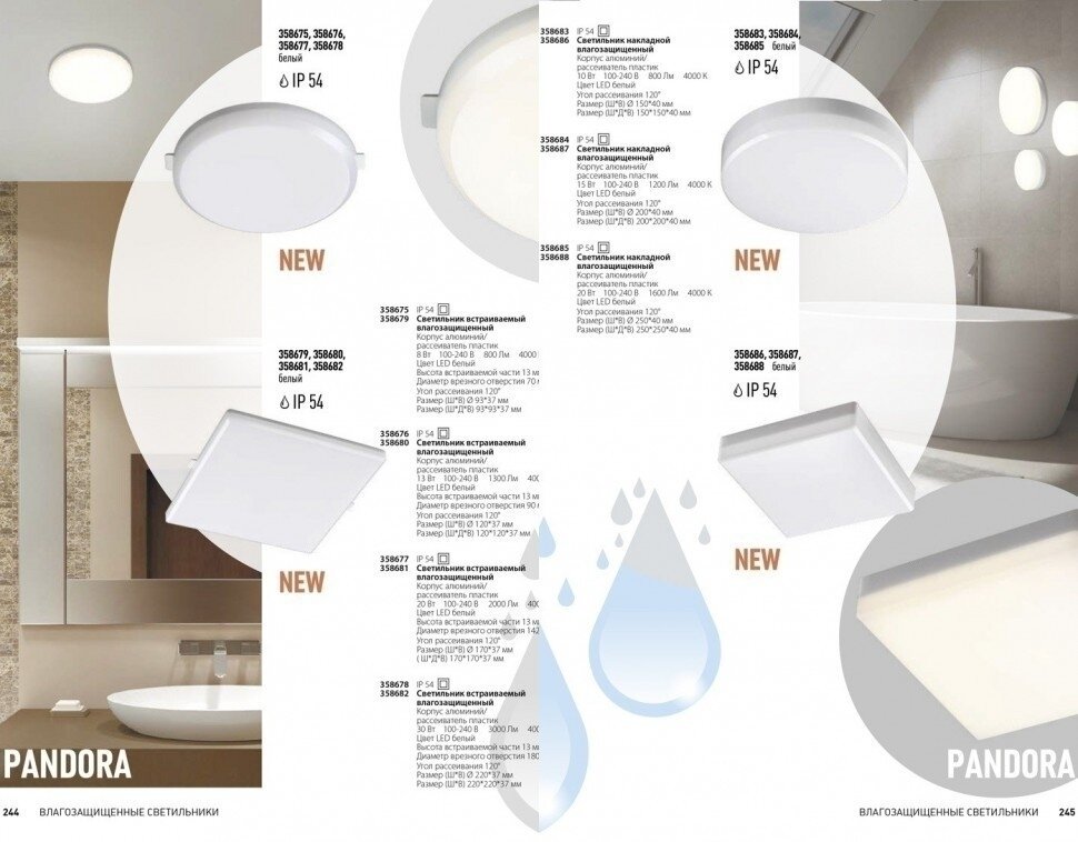 Светильник белый 358684 накладной влагозащищенный IP54 LED 4000K 15W 100-240V PANDORA
