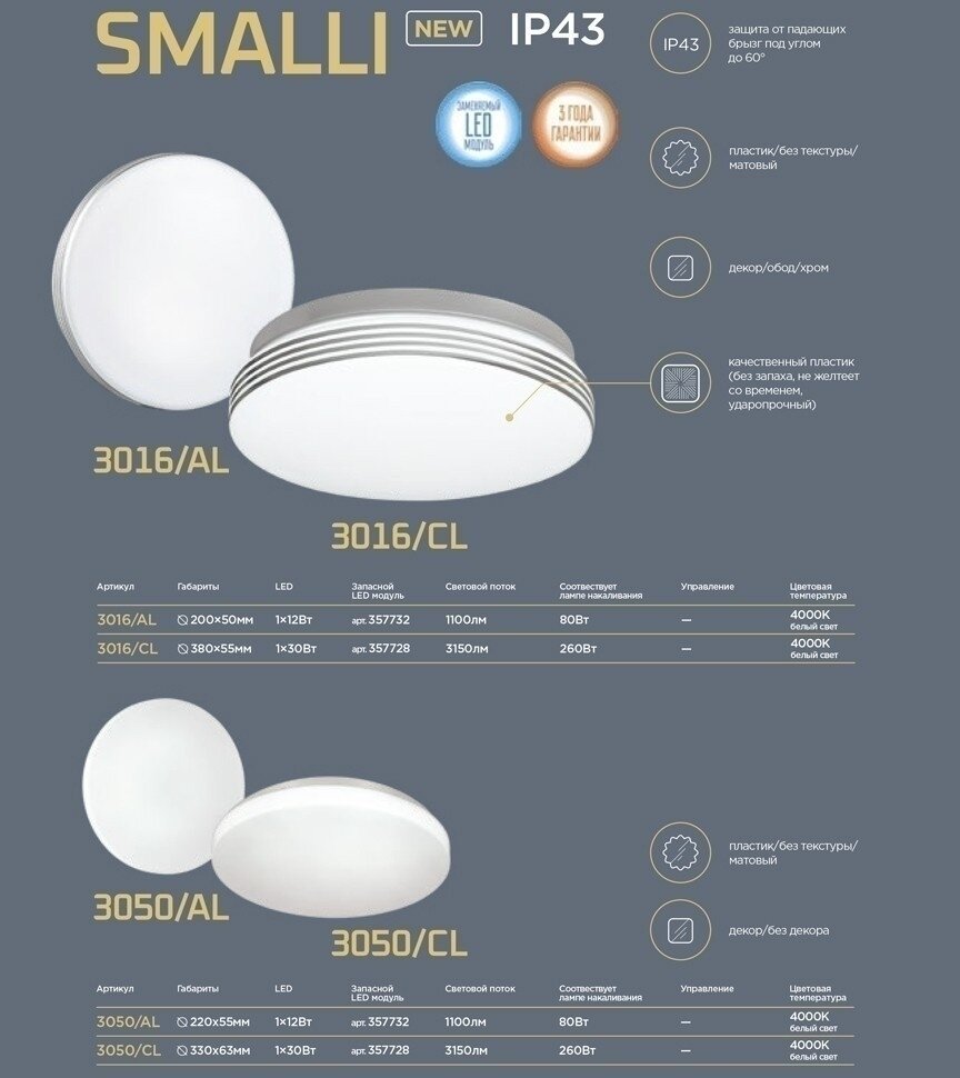 3016/CL SN 035 Светильник пластик LED 30Вт 4000K D330 IP43 SMALLI