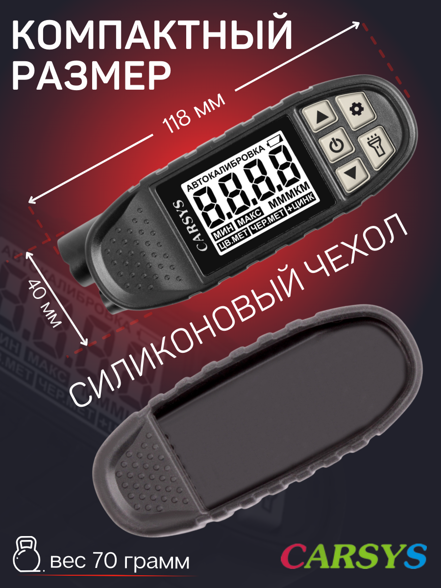 Толщиномер CARSYS Автоподбор с противоударным чехлом, Al/Fe + Цинк, фонарик