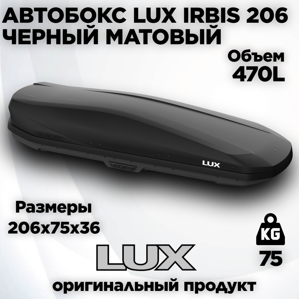 Купить Автобокс на крышу автомобиля LUX IRBIS 206 (Люкс Ирбис 206), черный матовый, 470 литров, с двусторонним открытием, 2060х750х360 мм. (арт. 793488)