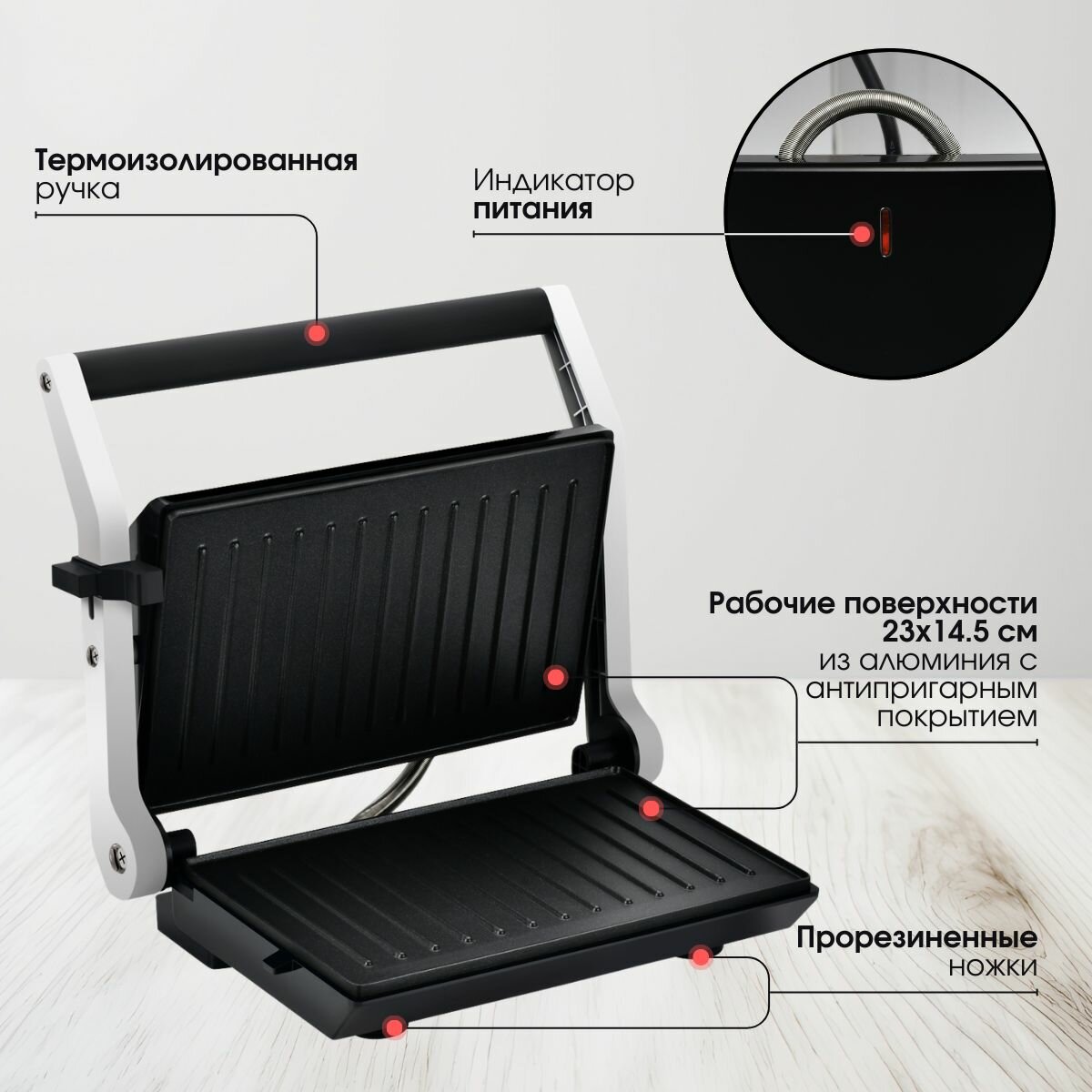 Электрогриль DOMFY Metal DSM-EG502, черный и серебристый