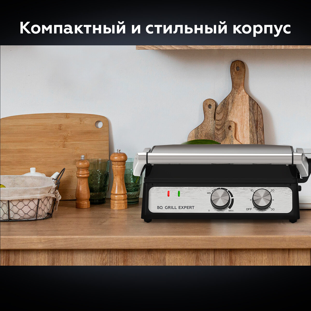 Гриль BQ GR1000 Серый металлик (2200 Вт, съемные пластины)
