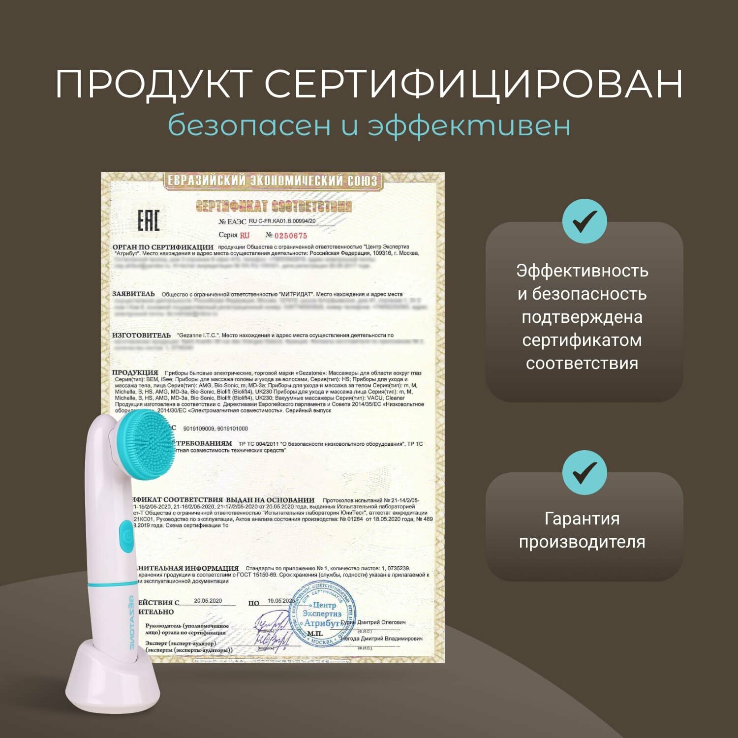 AMG108S Массажер для ухода за лицом с 2-мя насадками Gezatone