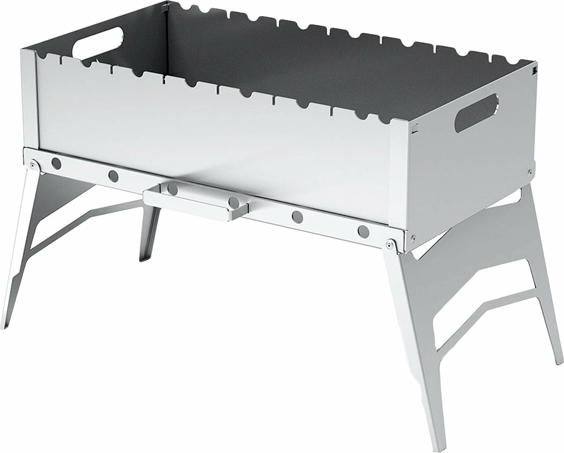 Металл 2мм, качественное изготовление. Кромки обработаны, заусенцев и шероховатости нет. Механизм складывания продуман основательно. Вс? в сборе, ни чего не потеряется. Однозначно- рекомендую, в машине для пикника самое то. Производителю респект.