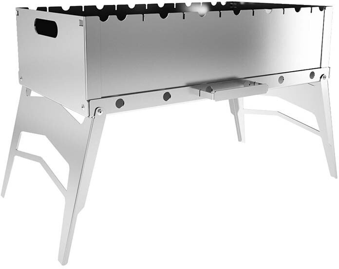 Прочный и тяжелый, очень удобно уметь свой компактный мангал.