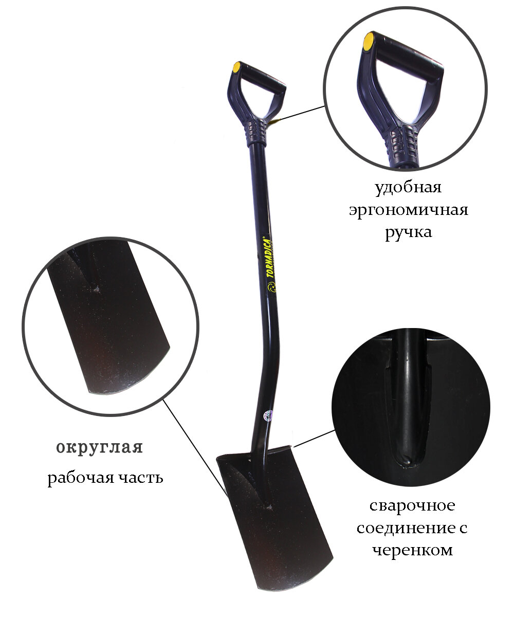 Лопата штыковая с черенком Торнадика Профи с закругленным совком / Лопата штыковая с черенком и ручкой Tornadica PROFI с округлым ковшом