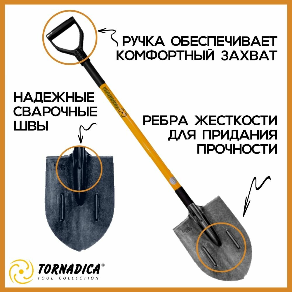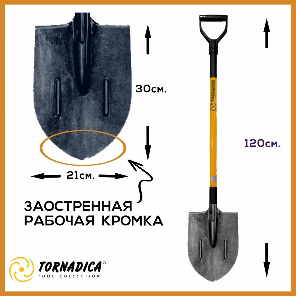 Лопата штыковая с черенком Торнадика Профи с закругленным совком / Лопата штыковая с черенком и ручкой Tornadica PROFI с округлым ковшом