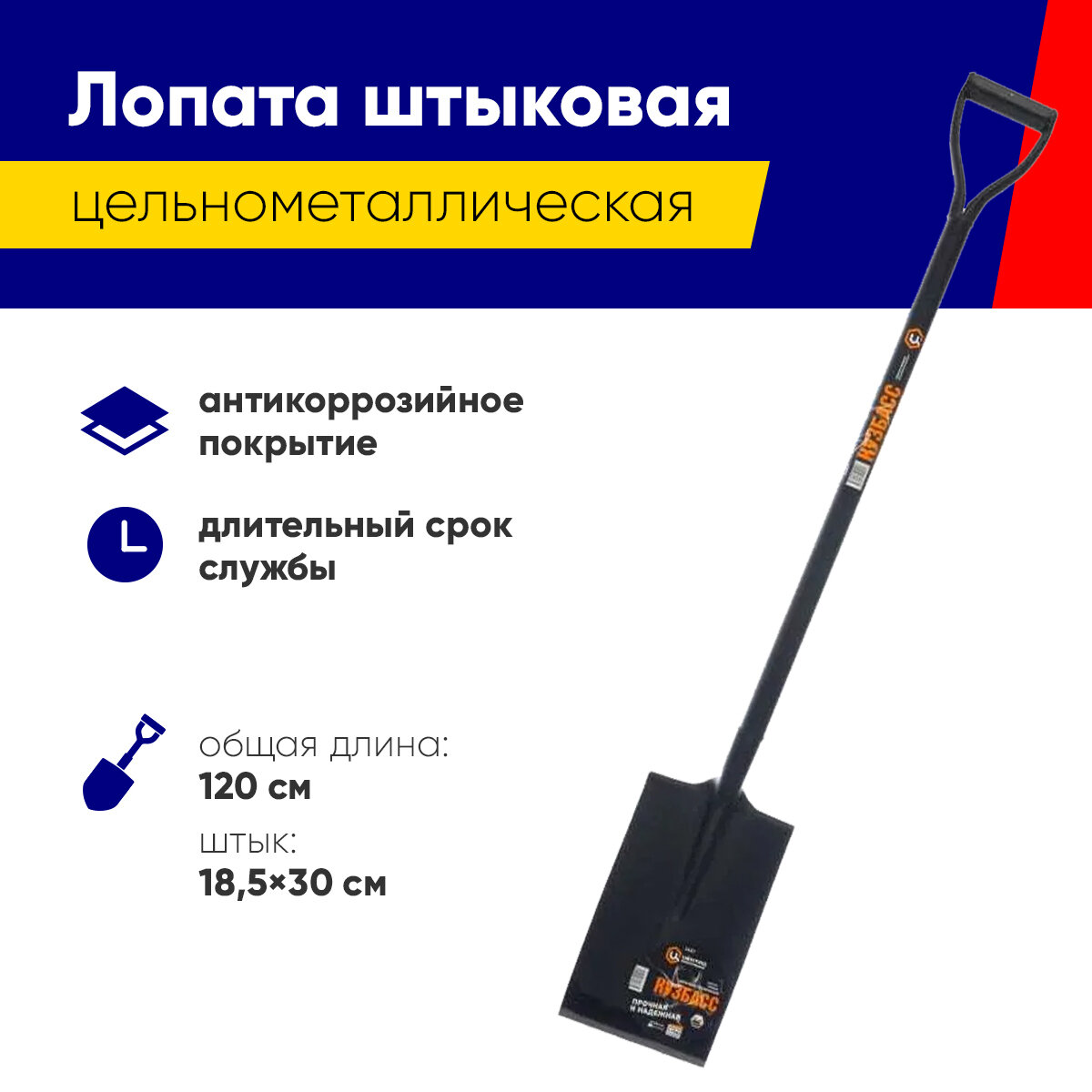 Лопата цельнометаллическая штыковая прямая "Кузбасс" 120 см 1447 ЦИ