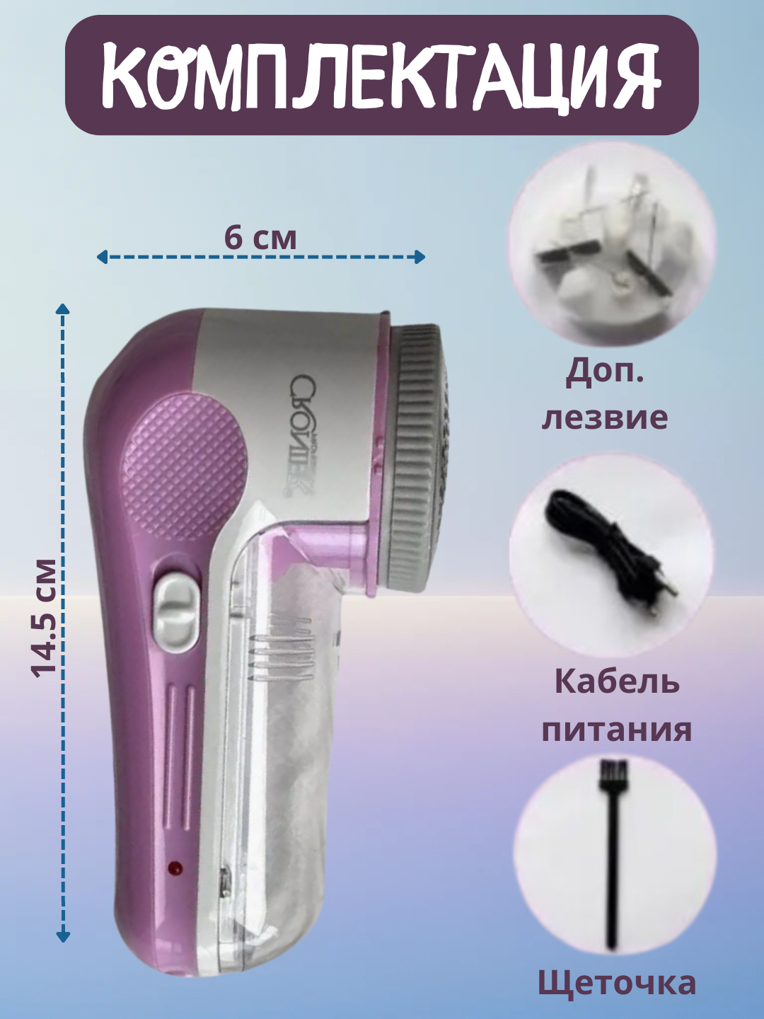 | Комплектация | в комплекте Машинка - 1 шт, защитная насадка - 1 шт, кабель для зарядки - 1 шт, насадки для удаления катышков - 2 шт, упаковка - 1 шт., щеточка для чистки лезвий - 1 шт |