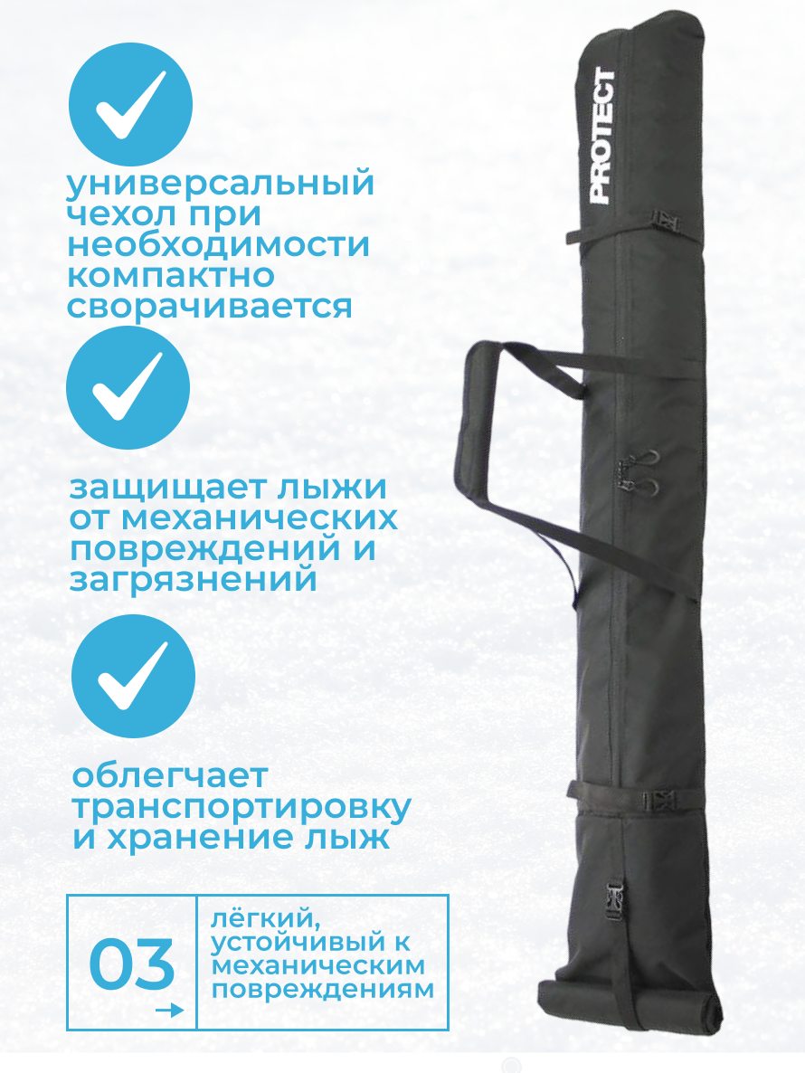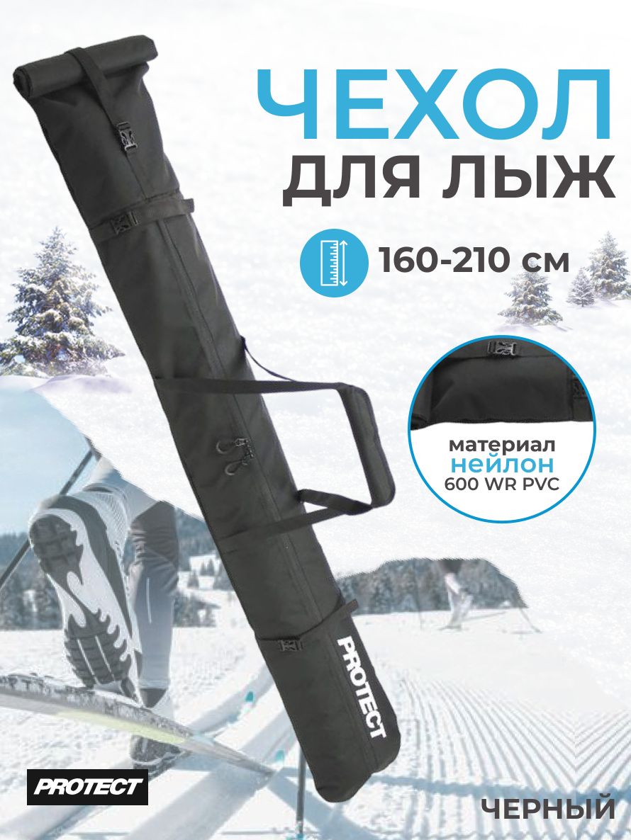 Купить Чехол д/лыж универсальный PROTECT, 160-210 см, черный