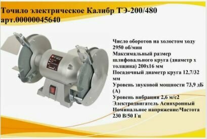 СохранитьТочильный станок калибр ТЭ-200/480 (480Вт, 2950об/мин, 200мм/20мм, посадка 12,7/32мм) интересное: