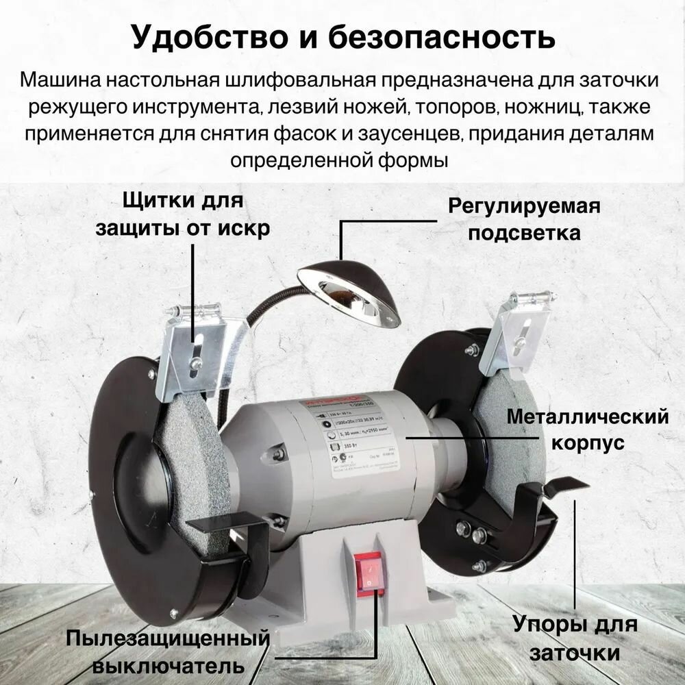 Заточная машина (точило) Т-200/350 с подсветкой, ИНТЕРСКОЛ 592.1.0.00