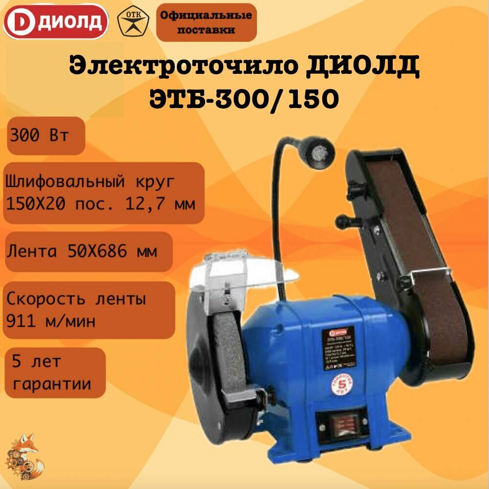 Купить Электроточило Диолд ЭТБ-300/150, 300 Вт, 2950 об/мин