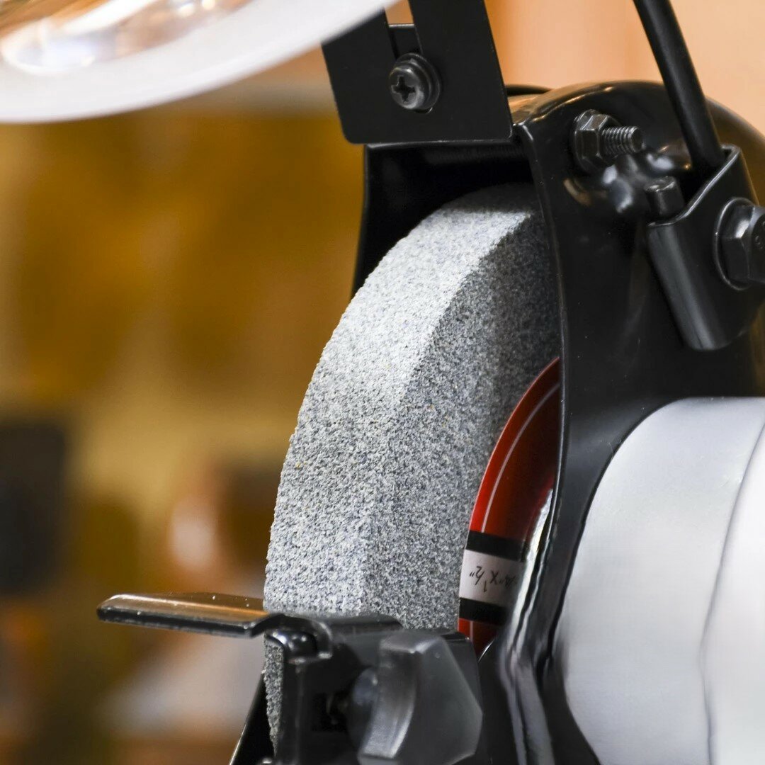 | Плюсы: | Точило с гриндером. Два в одном. Вибраций нет. Мотор сильно не греется. Защита на камне сделана как увеличительное стекло. Подсветка. Достаточно мощный для заточки ножей, топора, сверл, ножниц и стамесок. Есть лоток для воды. |