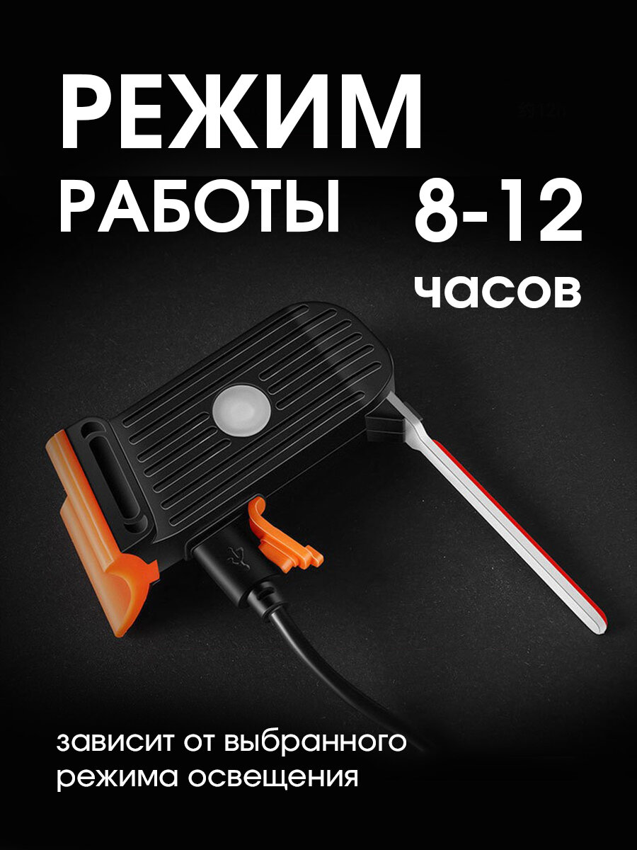 Фонарь велосипедный аккумуляторный светодиодный передний с гудком (оранжевый)