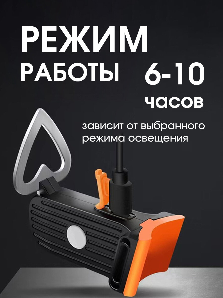 Фонарь велосипедный аккумуляторный светодиодный передний с гудком (оранжевый)