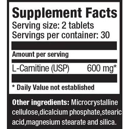 | Дополнительная информация | состав: L-карнитин, микрокристаллическая целлюлоза, дикальция фосфат, стеариновая кислота, магния стеарат, диоксид кремния; рекомендации по применению: в качестве пищевой добавки принимать по одной таблетке два раза в день между приемами пищи или по рекомендации врача |