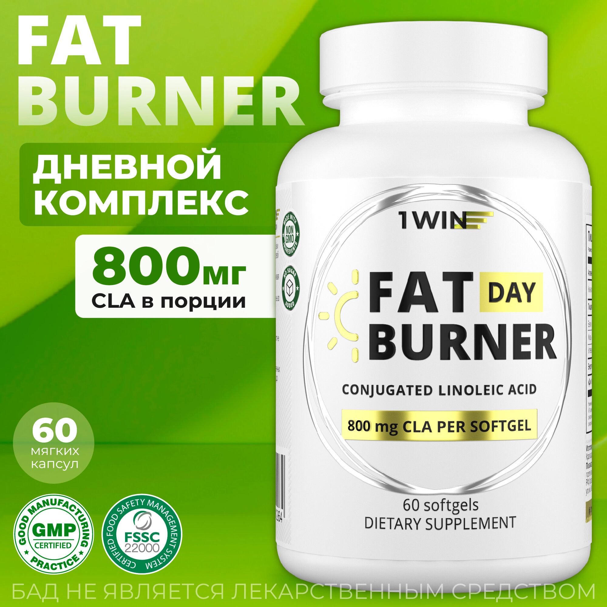 1WIN Жиросжигатель в капсулах Fat Burner Day дневной на основе CLA, Таблетки для похудения 60 шт, cпортивное питание, для похудения, сушки, снижения и контроля веса