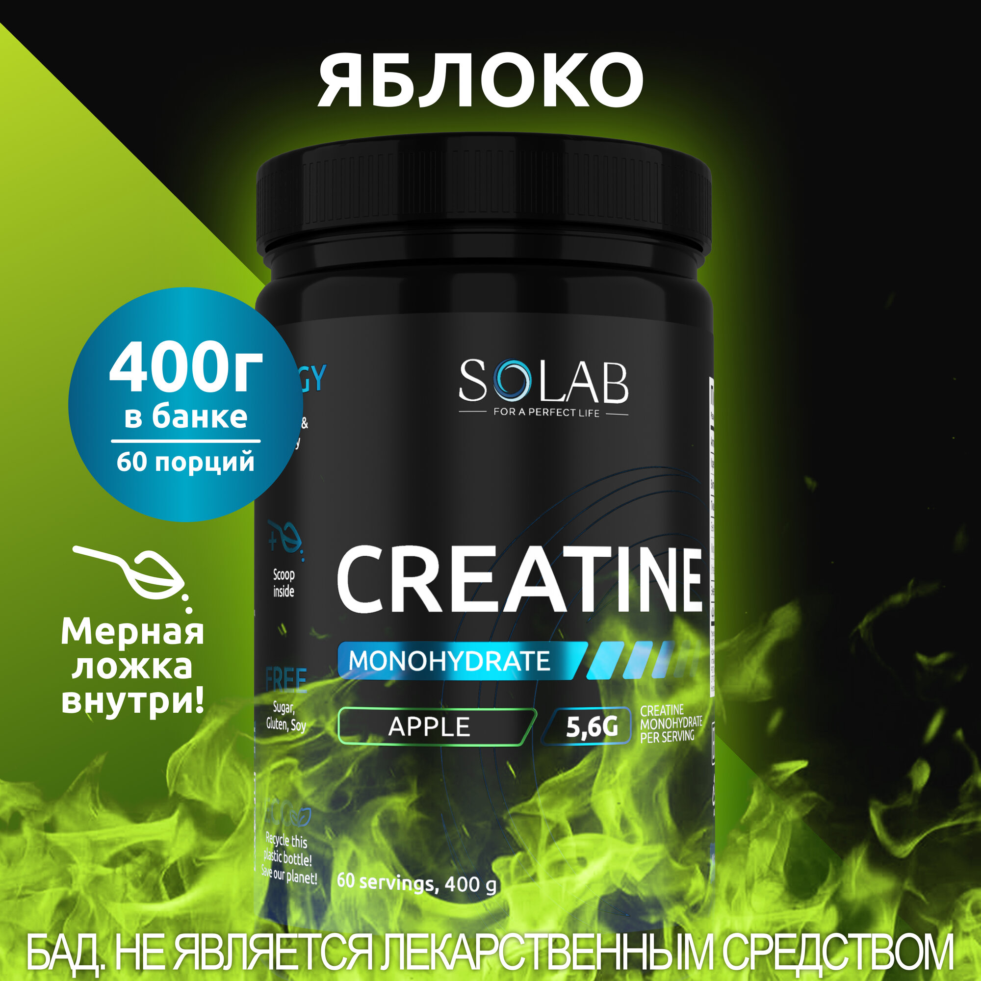 SOLAB Креатин моногидрат порошок 30 порций, Creatine Monohydrate, вкус яблоко, 200 гр спортивное питание