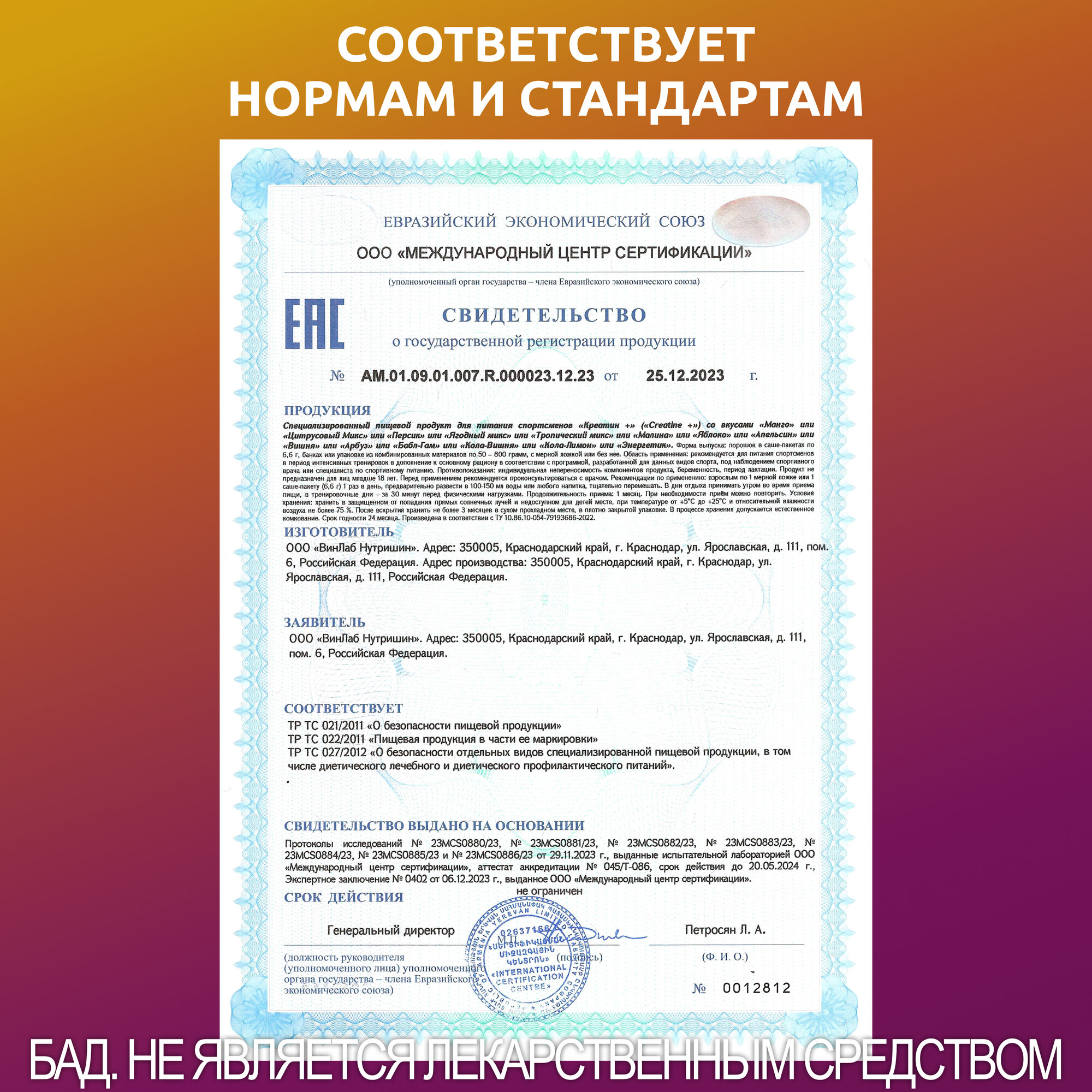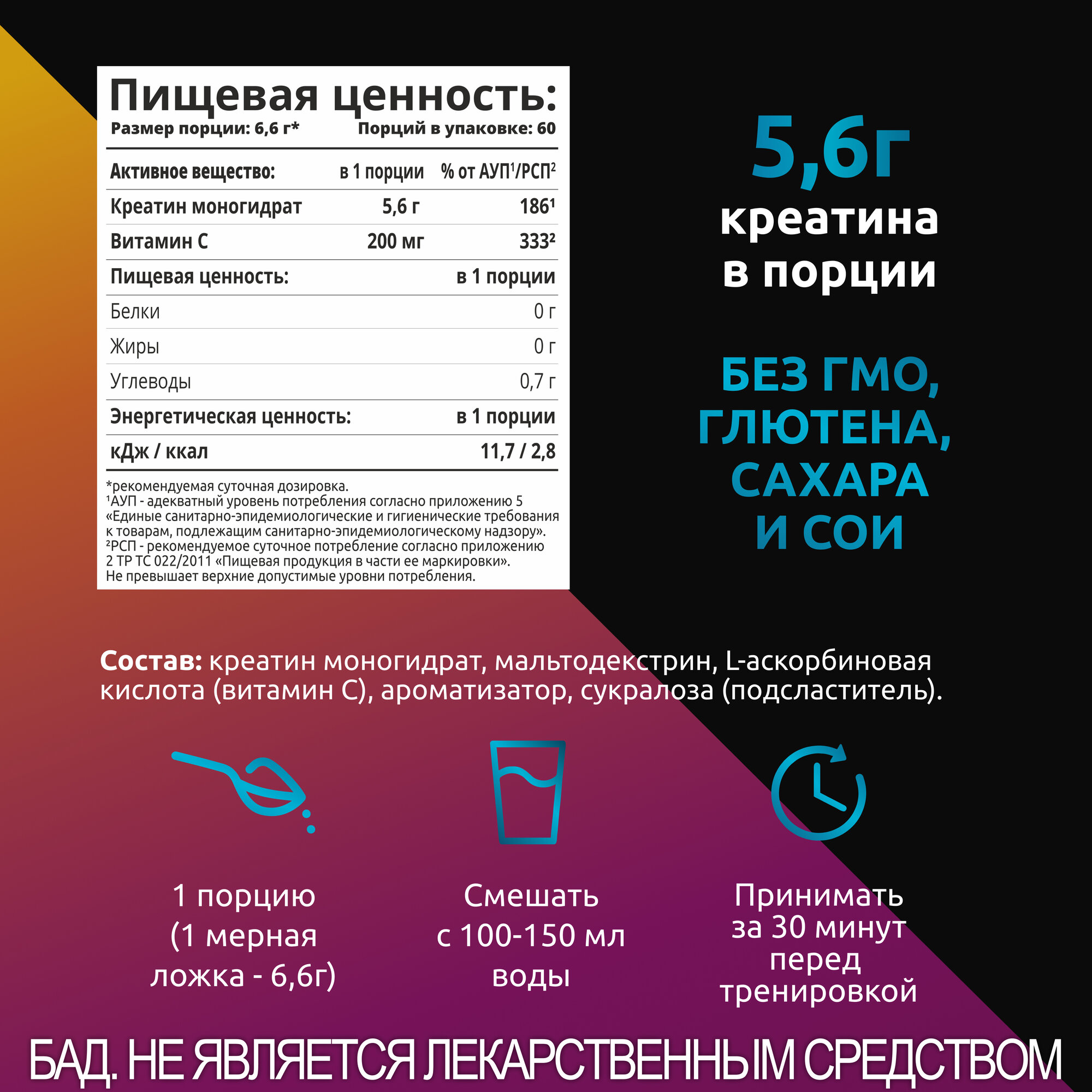 | Форма креатина | креатин моногидрат |