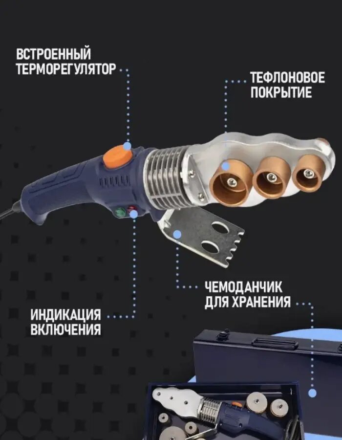 Аппарат для сварки пластиковых труб REXANT RX-1000 в кейсе, 6 насадок, 1000 Вт