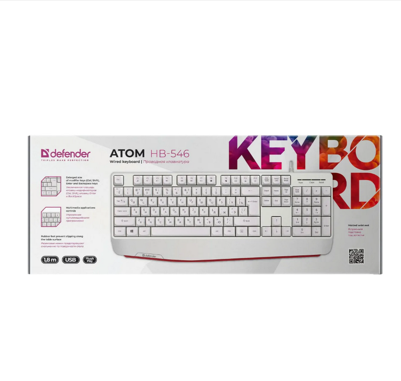 Defender Клавиатура проводная Atom HB-546 RU,белый,104+FN,1.8м