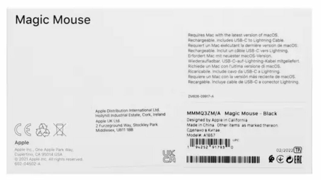 | Отзыв: | Единственный упрек модель А1657, то есть это Magic Mouse 2, но никак не 3. Также не считаю недостатком - отсутствие возможности пользоваться беспроводной мышкой во время зарядки по проводу, делайте это заранее! |