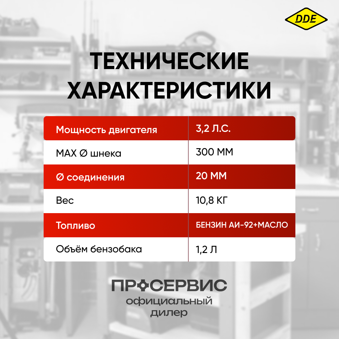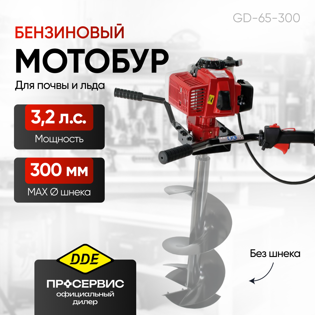 Мотобур DDE GD-65-300 (двухтактный 65 куб.см., 2,3кВт, редукция 34:1, масса 10,8 кг, макс. диаметр 3