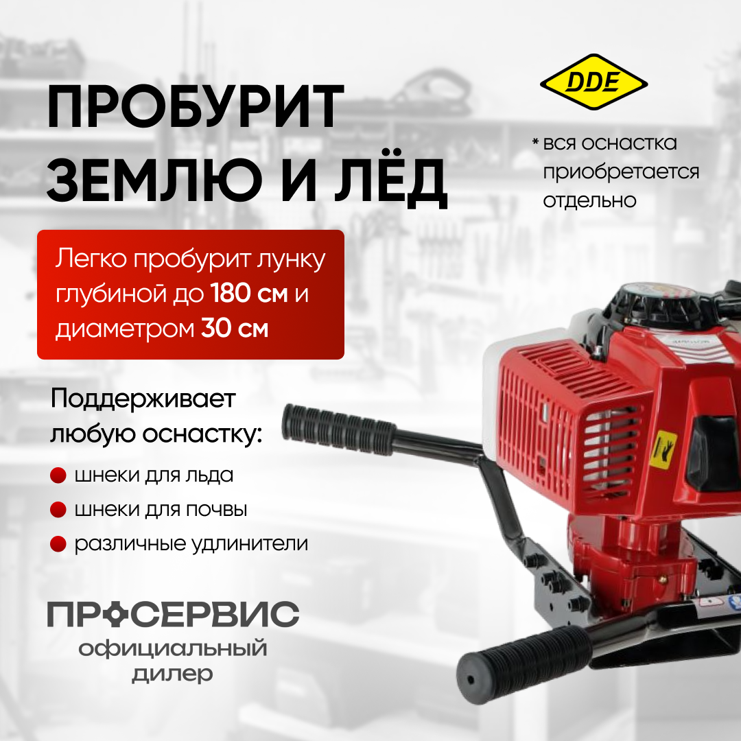 Купить Мотобур бензиновый для почвы и льда DDЕ GD-65-300 без шнека, диаметр бурения 300 мм (мощность 2,3 кВт)