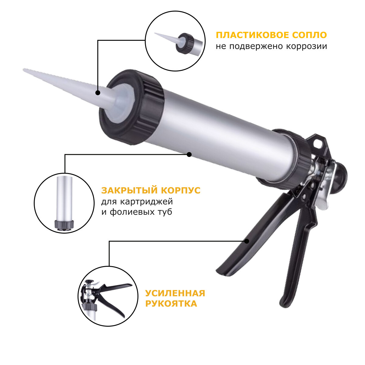 Купить Универсальный закрытый пистолет Ultima для герметиков в тубах и картриджах, 600мл, ULTMG17007