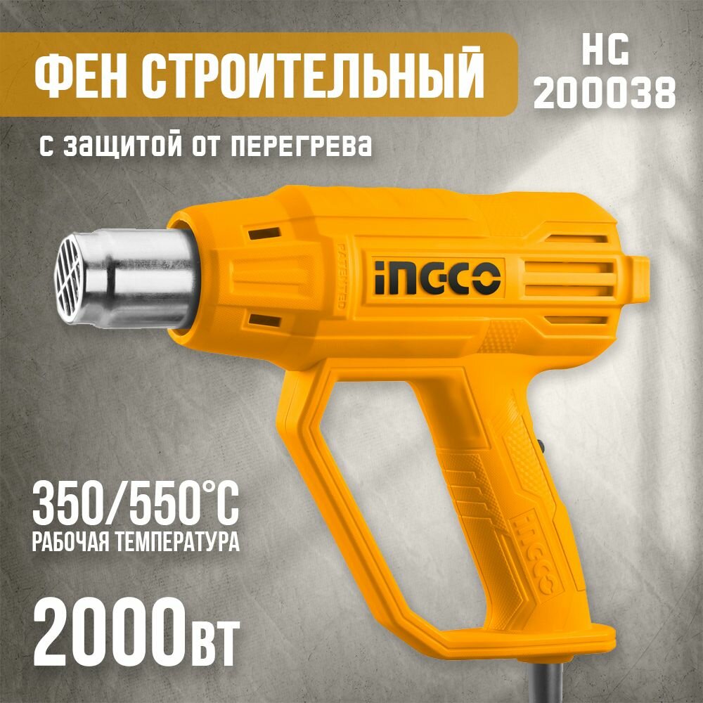 Строительный фен INGCO_Powertools технический Ingco HG200038 HG200038 интересное: