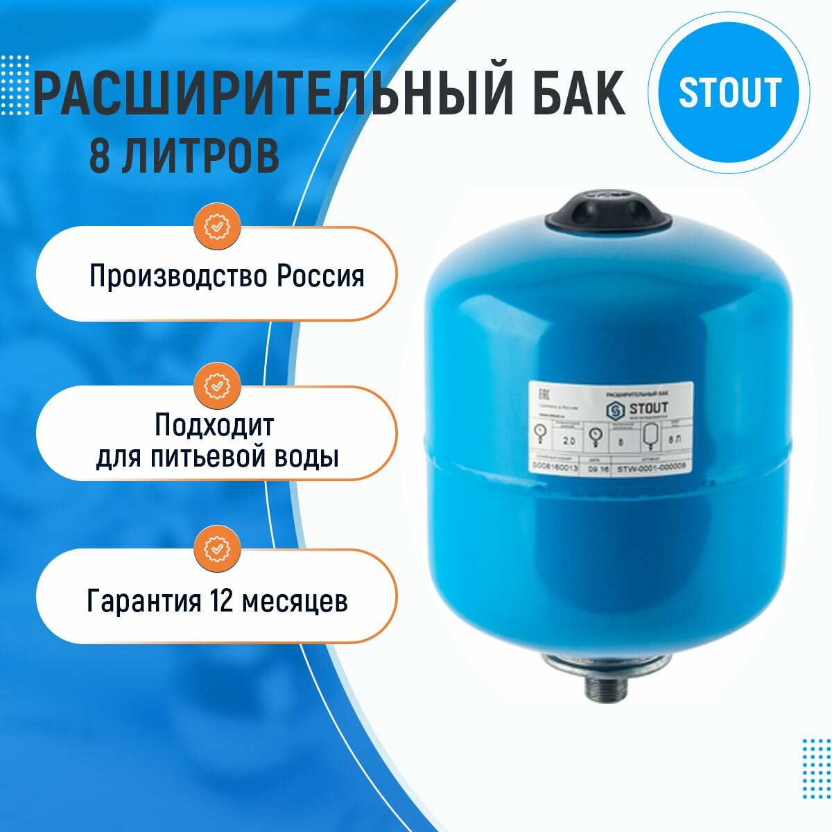 STW-0001-000008 STOUT Расширительный бак, гидроаккумулятор 8 л. вертикальный (цвет синий)