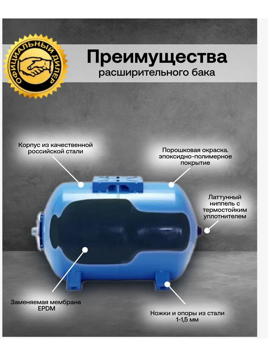 Купить STOUT Мембранный бак для водоснабжения 50л горизонтальный, синий