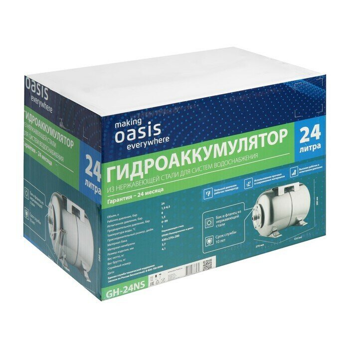 Гидроаккумулятор горизонтальный 24 л Oasis GH-24NS 1" серебристый интересное: