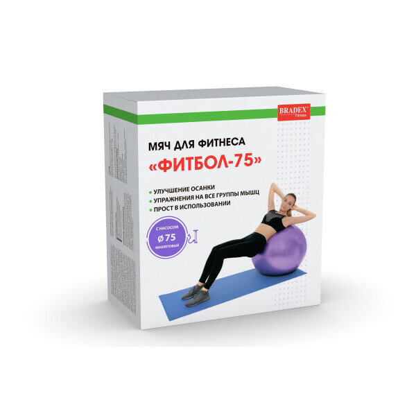 Мяч Bradex SF 0719 75 см с насосом для фитнеса, фиолетовый (ФИТБОЛ-75)