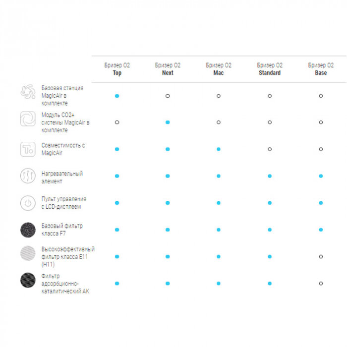 | Дополнительная информация | адсорбционно-каталитический фильтр AK, очищающий воздух от вредных газов, дыма и запахов; ЖК-дисплей; 4 скорости притока; станция автоматического управления MagicAir (включает сенсоры качества воздуха: СО2, температуры, влажности, а также модуль Wi-Fi для связи с облачным сервером) |