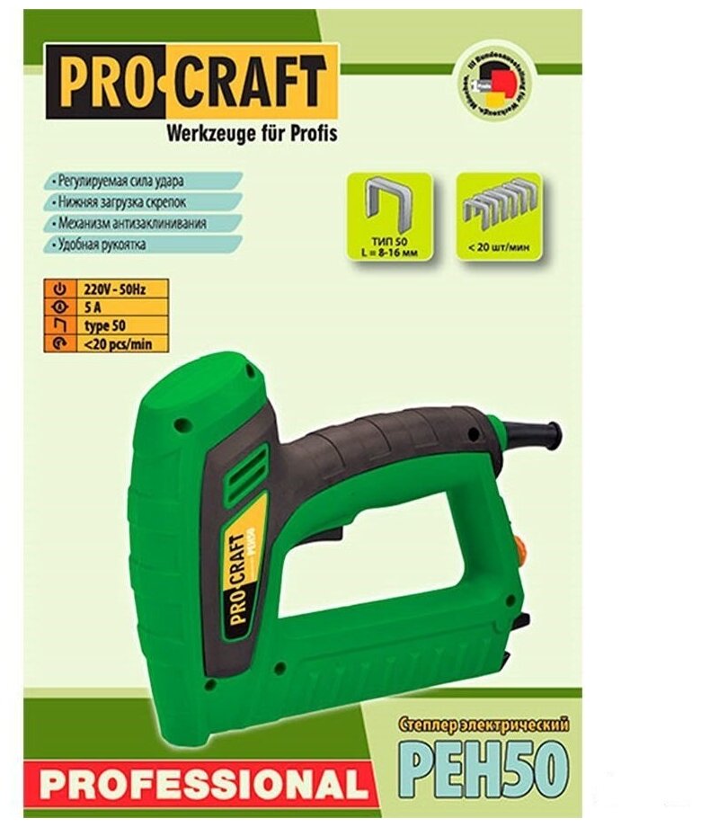 Степлер электрический Procraft PEH-50, скоба 15-32мм, гвозди 15-32мм, 20уд/мин