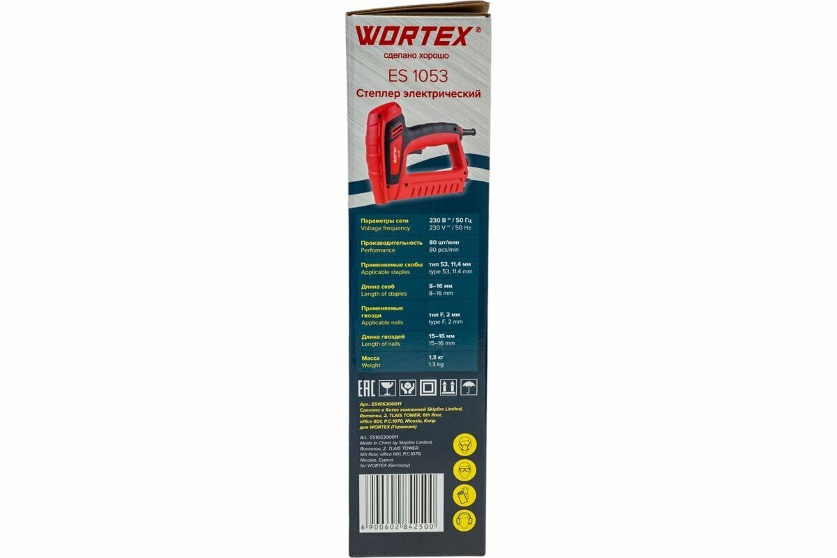Купить Степлер электрический WORTEX ES 1053 в кор. 80 скоб/гвоздей в мин (гвозди макс. 16 мм, скобы 8-16, тип скоб 53, рег. силы удара) (ES105300011)