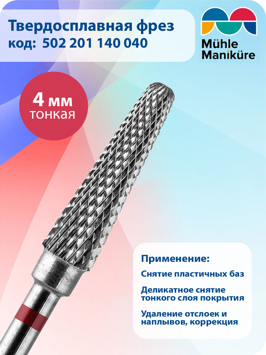 Фреза для маникюра и педикюра Mühle Maniküre твердосплавная для снятия покрытия 502 201 140 040 Тонкая красная конус интересное:
