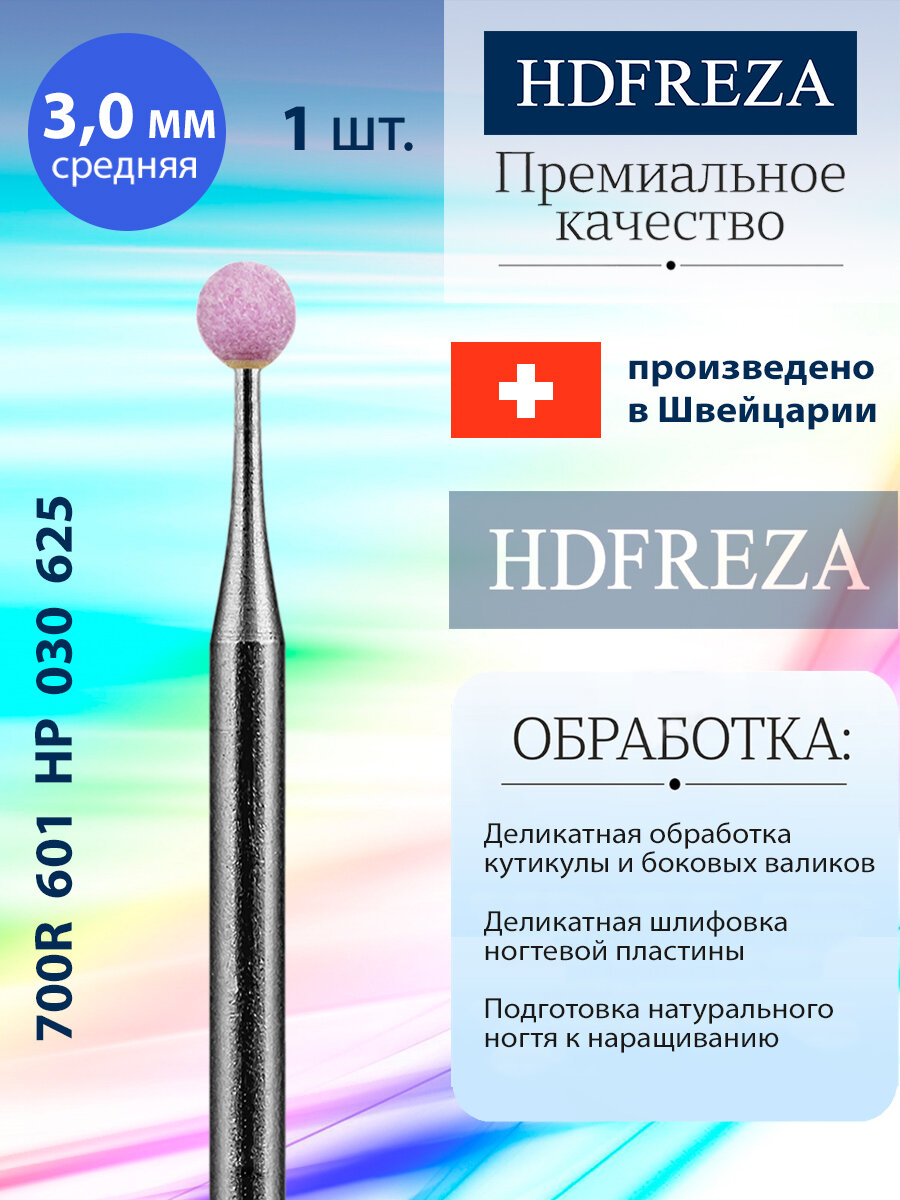 HDFREZA Фреза для маникюра и педикюра корундовая 700R 601 HP 030 625 Средняя шар d-3.0