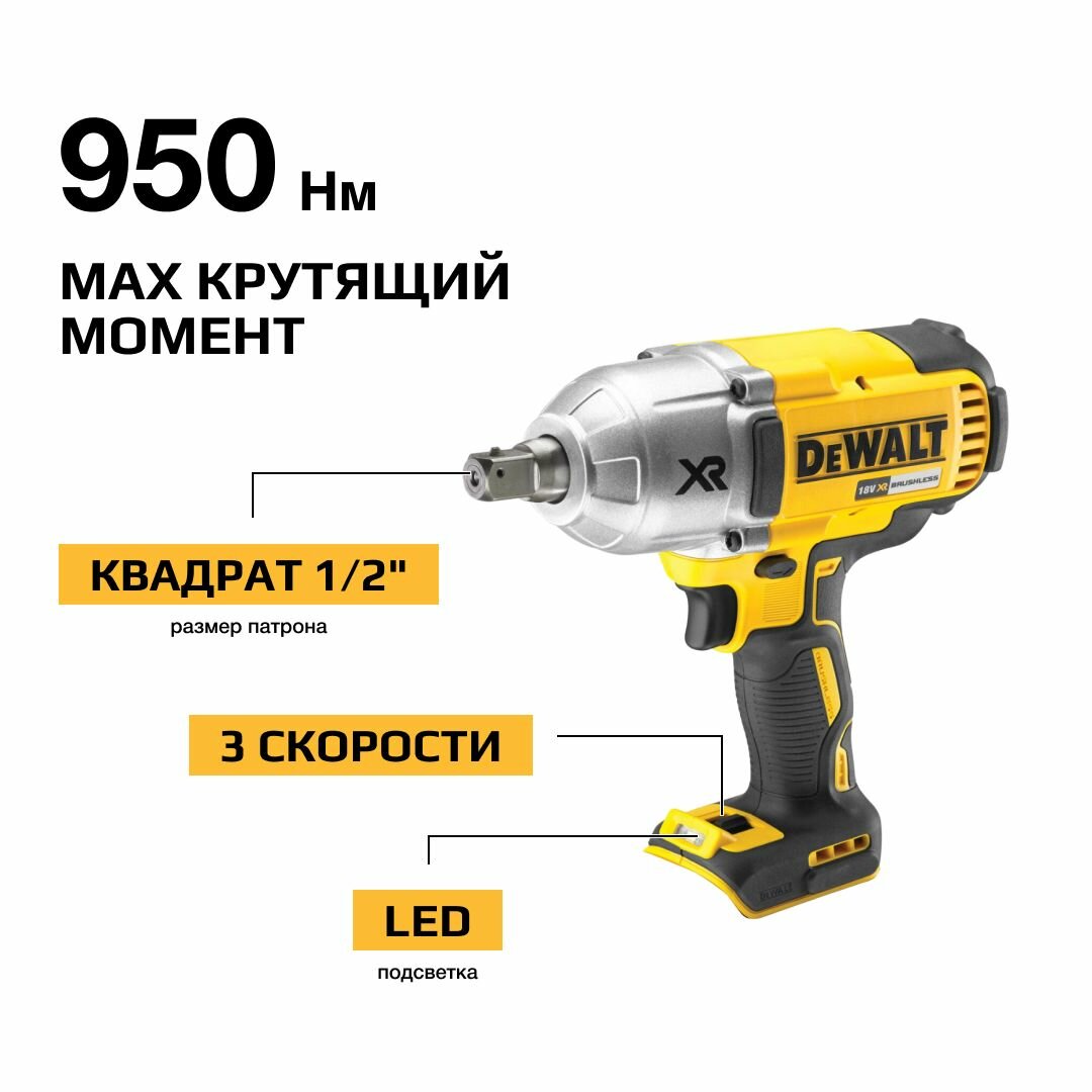 Купить Аккумуляторный импульсный гайковерт DEWALT, 18 В, 950 Нм, 2400 уд/мин, 1900 об/мин, без АКБ и ЗУ, DCF899N