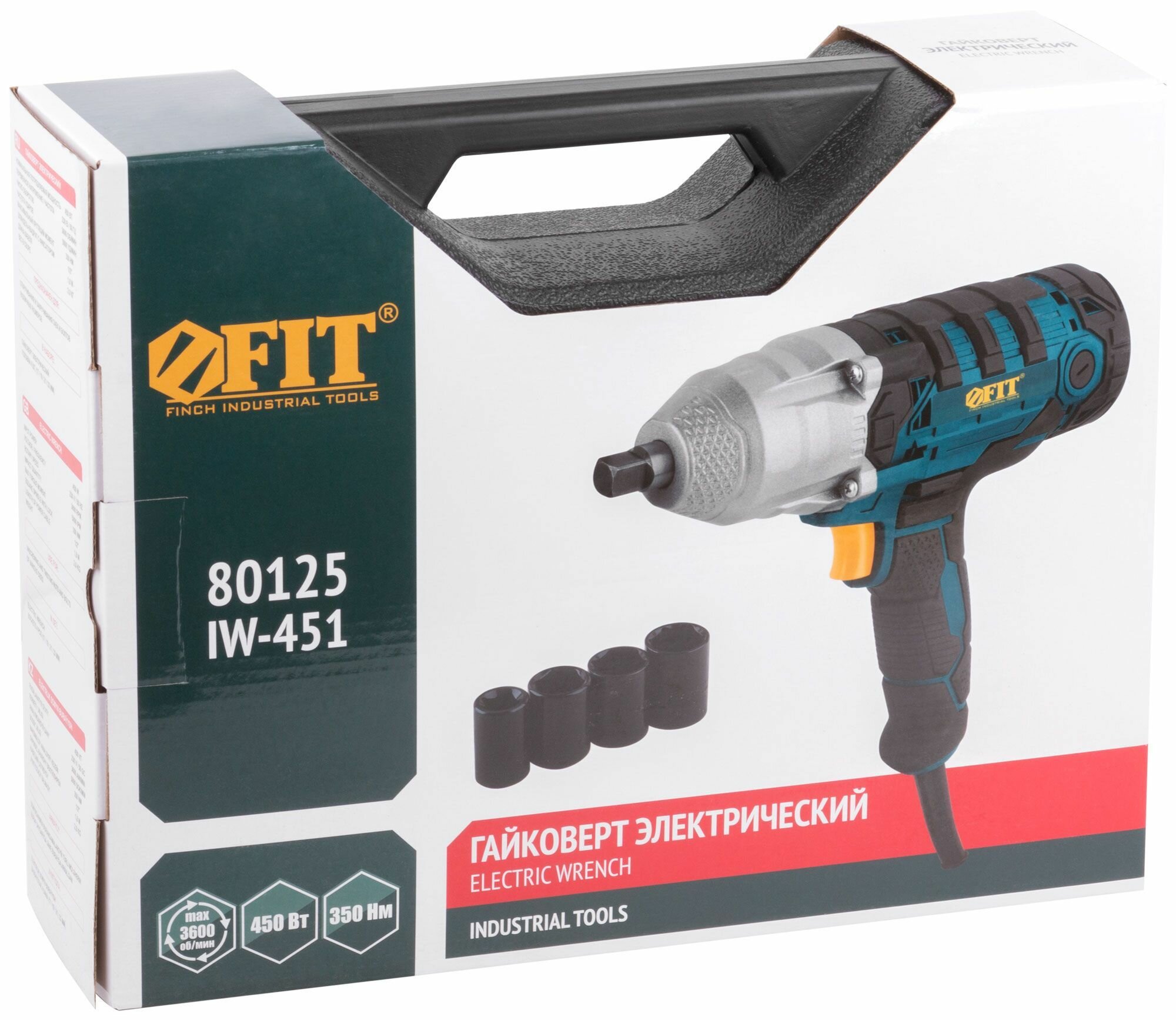 Купить Гайковерт электрический 450 Вт; 3600 об/мин; 5000 уд/мин; 350 Нм; БС щеток; рез. накл.; 2 кг; коробка FIT 80125