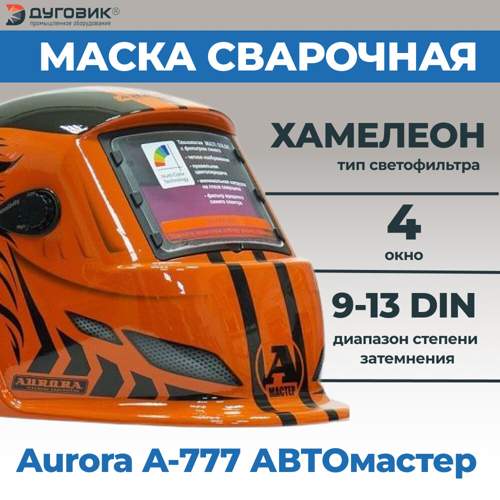 Маска сварщика AURORA A-777 Хамелеон Автомастер, DIN 9/13, с автоматическим светофильтром, ограниченная серия