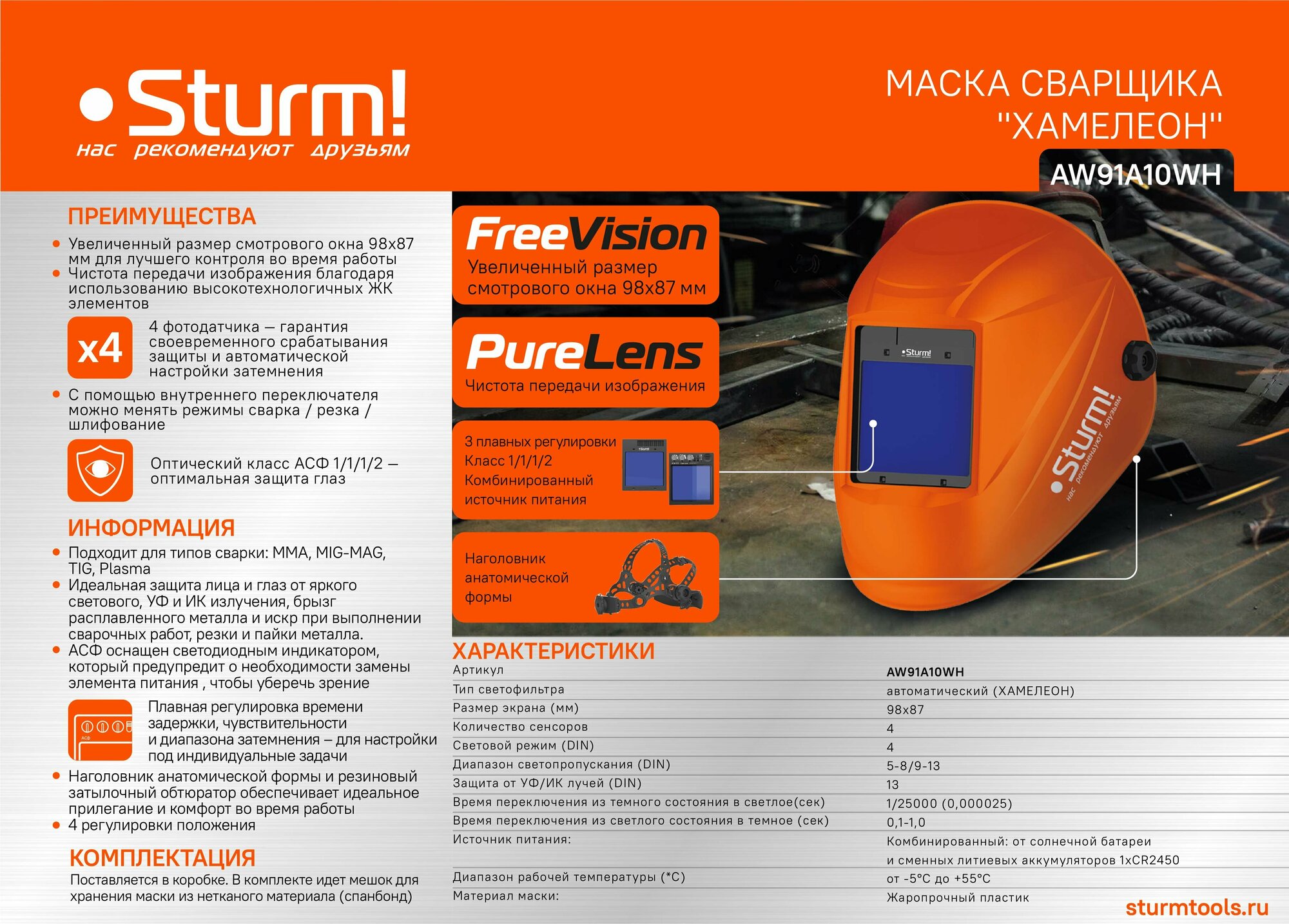 Сварочная маска STURM AW91A5WH