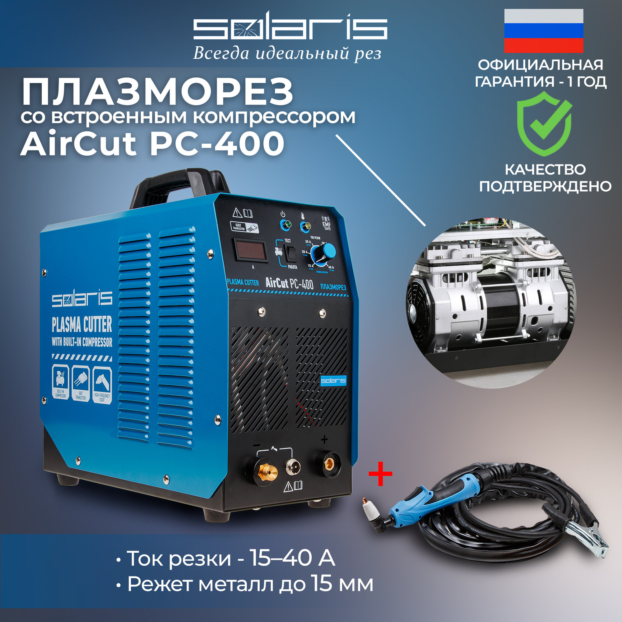 Solaris Плазморез AirCut PC-400 (220 В, 15-40 А, Высоковольтный поджиг, встроен.компрессор, термозащита, плавный запуск) ()