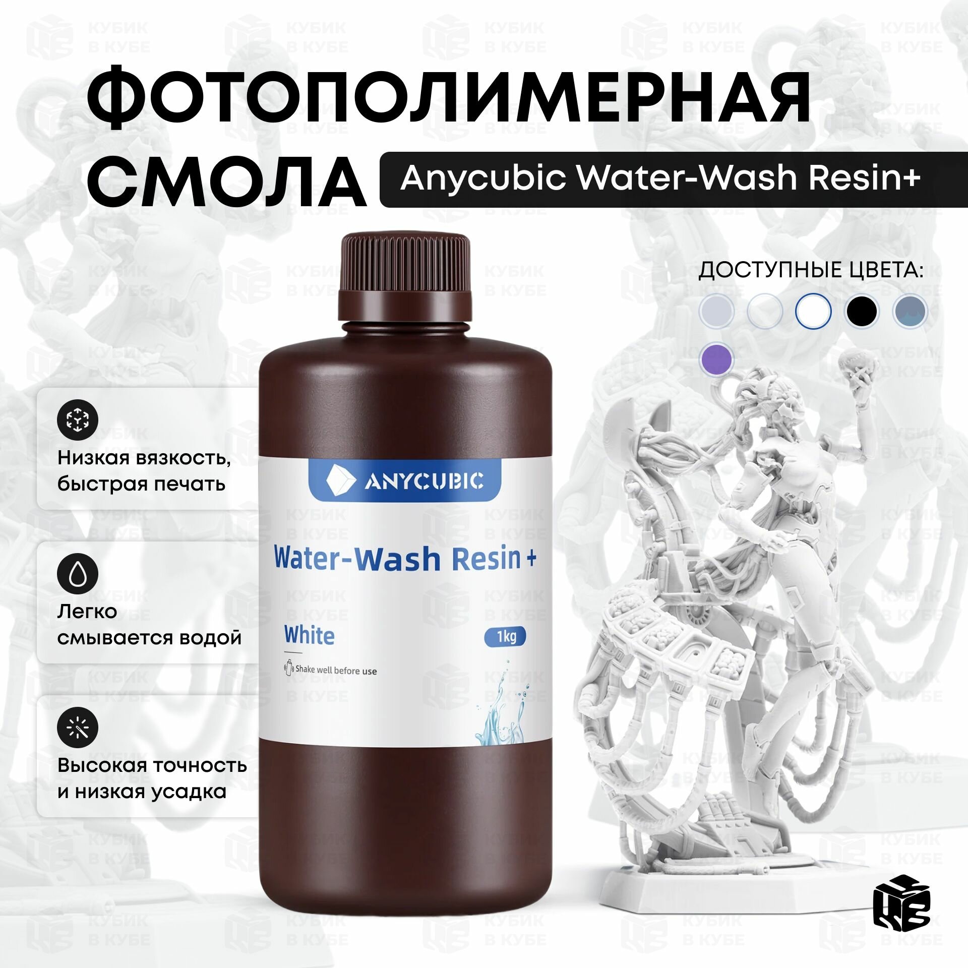 Фотополимер Anycubic Water-Wash Resin+, белый (1 кг)