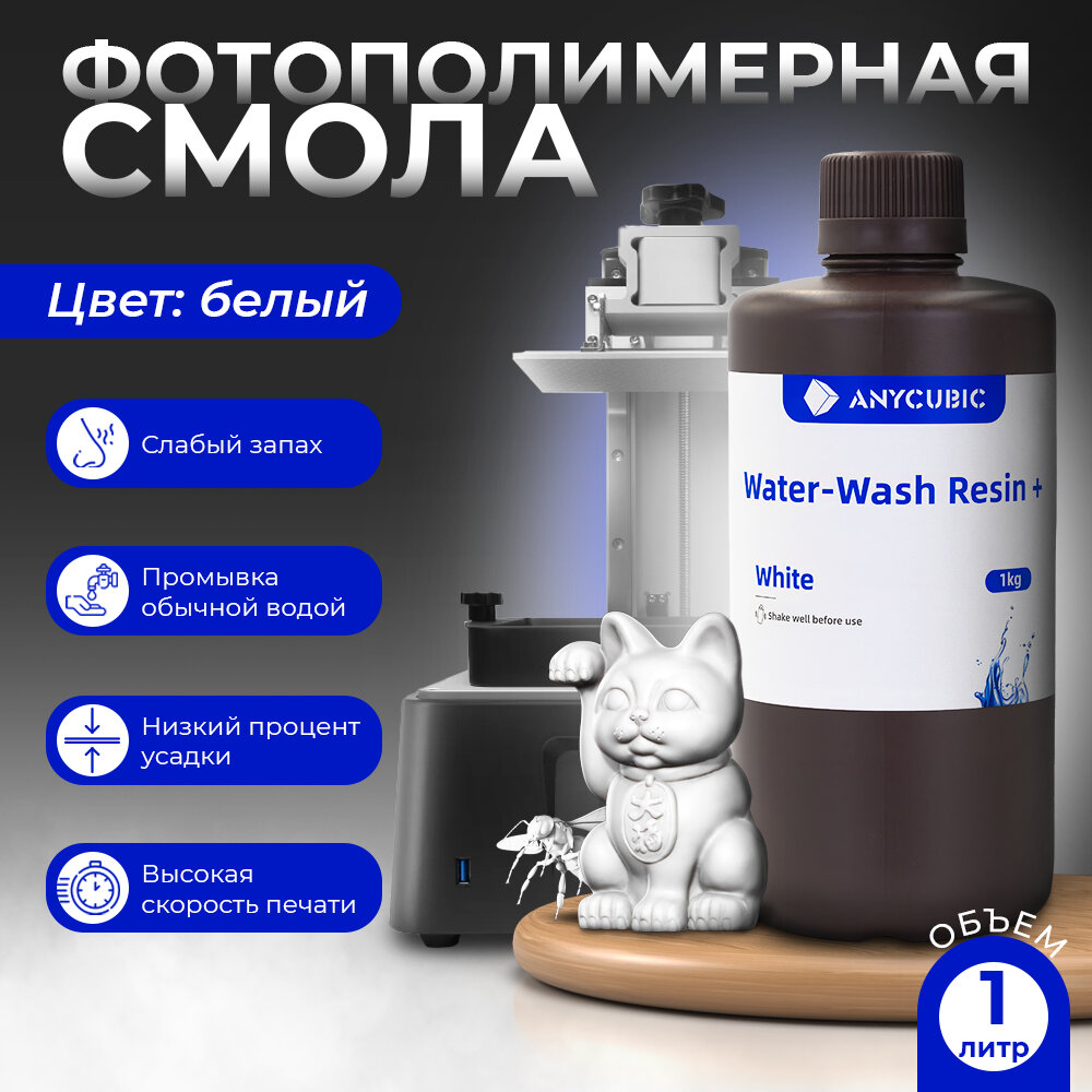 Купить Фотополимерная смола Anycubic Water-Wash Resin+ белая