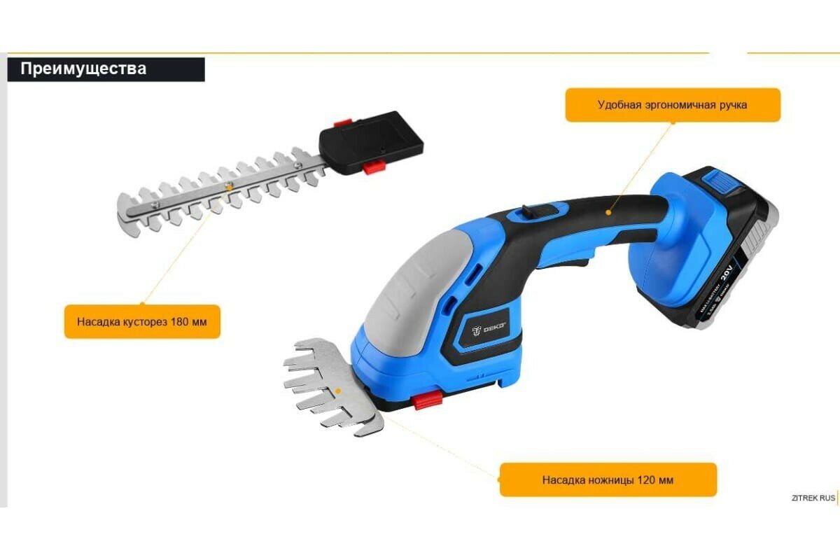 Купить Ножницы садовые аккумуляторные Deko 1*2.0 Ач, черно-синий, (DKGS20)