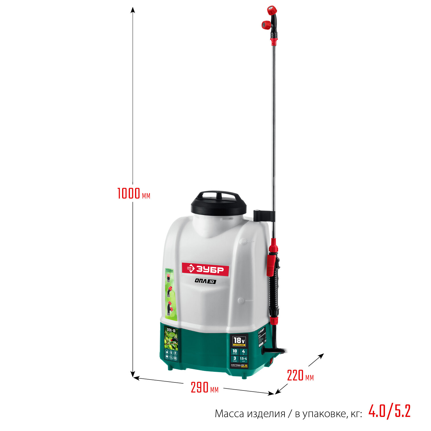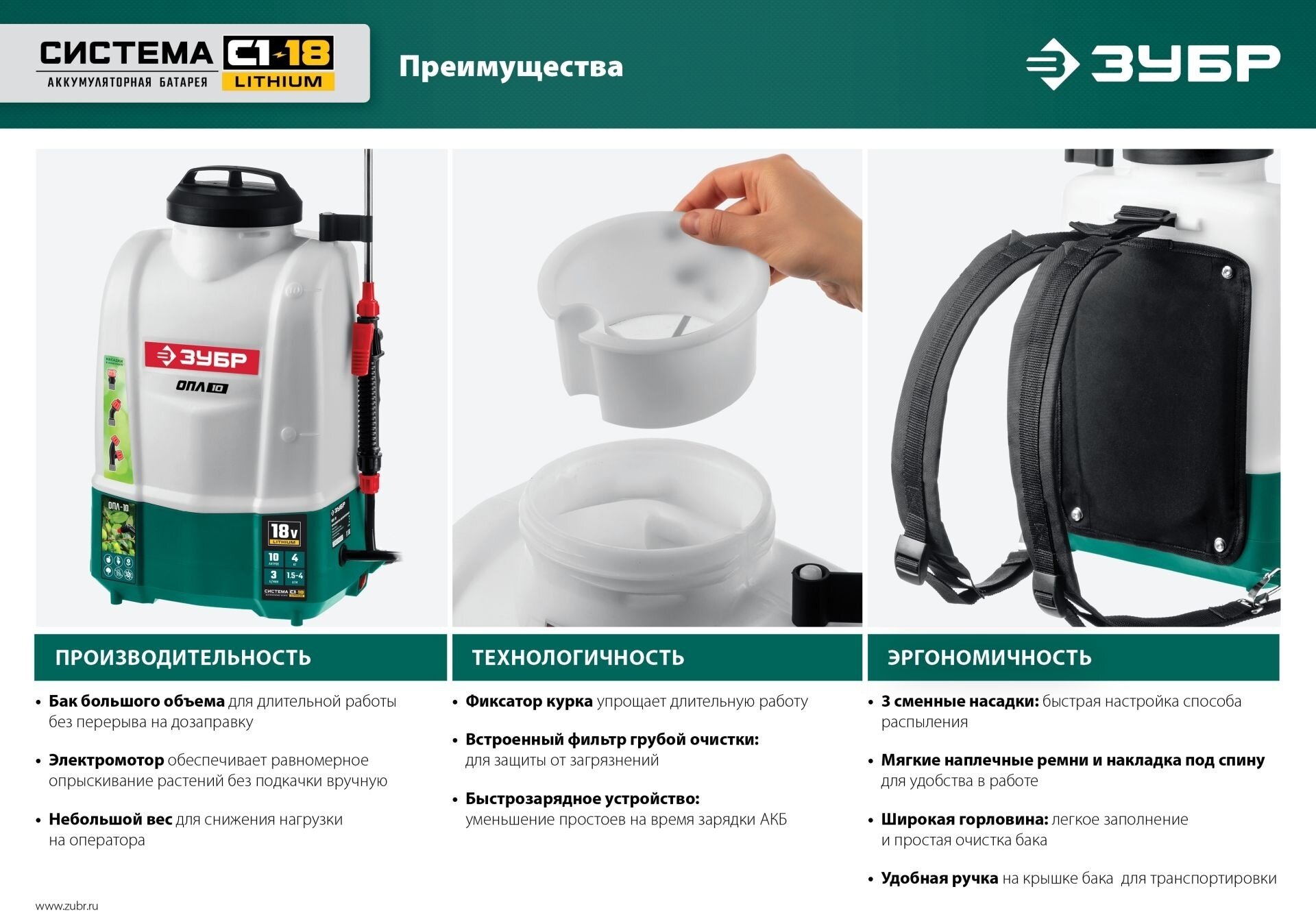 ОПЛ-10 аккумуляторный опрыскиватель ЗУБР, 10 л, без АКБ, Li-Ion 18 В